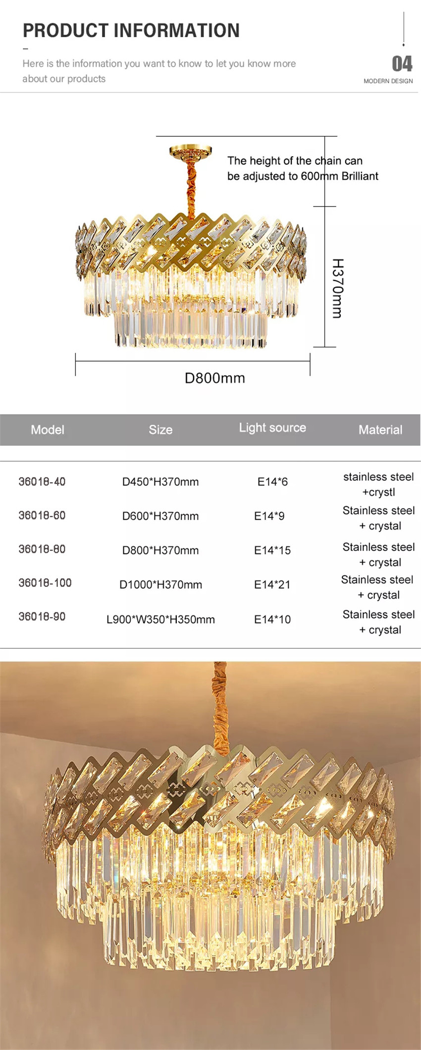 This Crystal Chandelier is designed into a very luxury round and Oval shape,metal frame combined together gives you a classic look. All the k9 crystals with multi-angled cut, very sparkling and stunning, no matters when you turn on the light or turn off the light, it can also add a bit of luxury to your home.You can choose different color temperature to match with your home decor, warm (yellow) light can bring you cozy and warm feeling, cool white light will gives you very bright and stunning look.