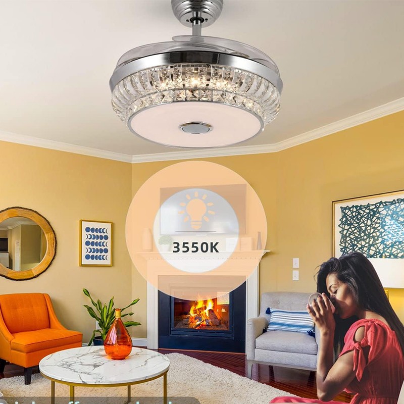 Quiet reversible ceiling fan: Retractable blade ceiling fan uses high quality pure copper coil motor for stable operation and low noise design without affecting the sound of music.